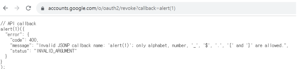 https://accounts.google.com/o/oauth2/revoke?callback=alert(1)