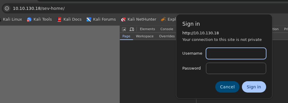이후 웹 페이지에서 나타내는 /sev-home/ 경로로 이동했다.
