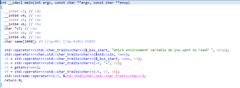 name변수에 1040만큼의 공간이 할당되었고 name에 특정 값을 입력하는 거 같았다 (추측)