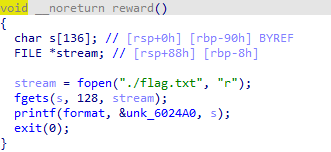 IDA를 통해 확인하였을 때는 while문을 통해 계속 돌다 dword_6024E0의 값이 1000000과 동일하면 break를 통해 반복문이 종료되며 reward함수를 호출한다.