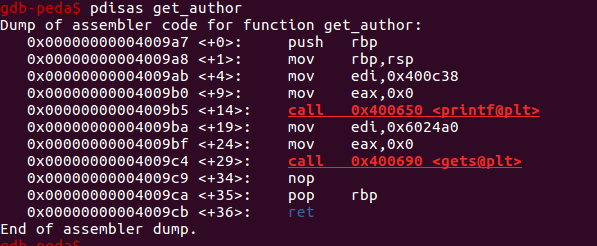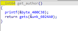 그 후 get_author 함수를 보면 여기서도 gets를 통해 입력받을 수 있다 여기서 bof를 일으키면 될 거 같다