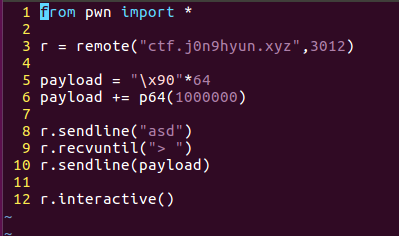 그럼 이제 64만큼의 더미 값을 채운 후 dword_6024E0의 값을 1000000으로 바꿔주면 된다.