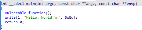 main함수에서는 vulnerable_function함수를 호출하고 write함수를 통해 특정 문자열을 출력한다.