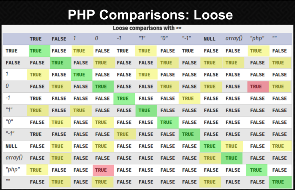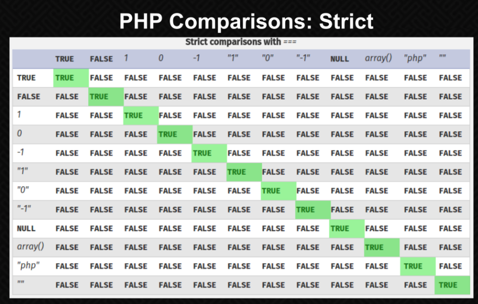 - PHP 에서는 두 값을 비교하는 방식으로 == 와 === 이 존재한다.