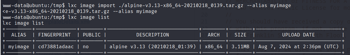 groups=33(www-data), 115(lxd)