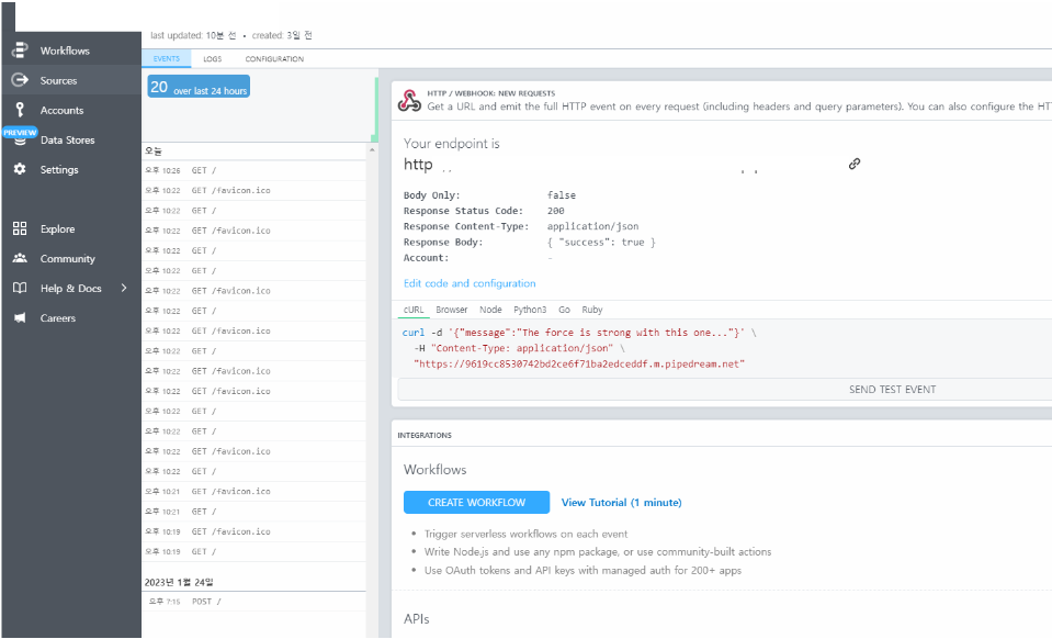 웹 후크, API 및 기타 유형의 HTTP기반 통합을 디버깅하고 테스트하는 데 사용할 수 있다.
