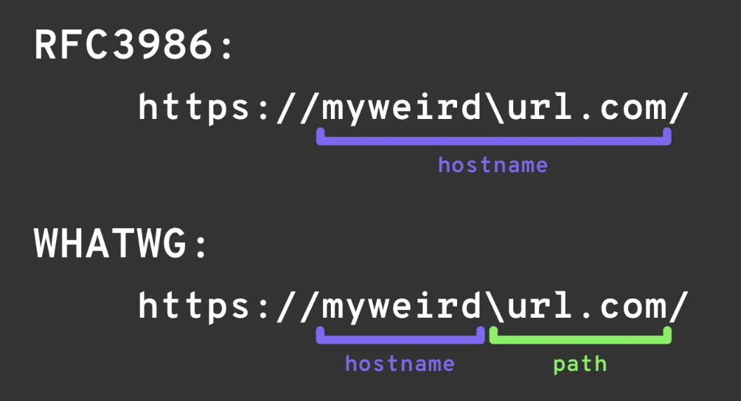 \ 의 경우 RFC3986 과 WHATWG URL 두 개의 표준이 서로 인식하는 바가 다르기에 사용할 수 있다. 최신 브라우저는 WHATWG URL을 구현한다.