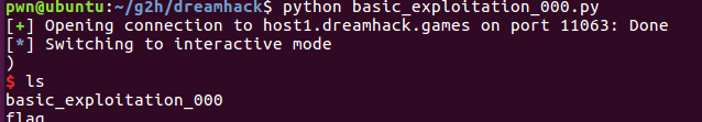 이번에 풀 문제는 dreamhack에 1단계 문제인 basic_exploitation_000이다.