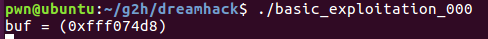 프로그램을 실행시켜보면 buf의 주소를 출력해주는 거 같다.