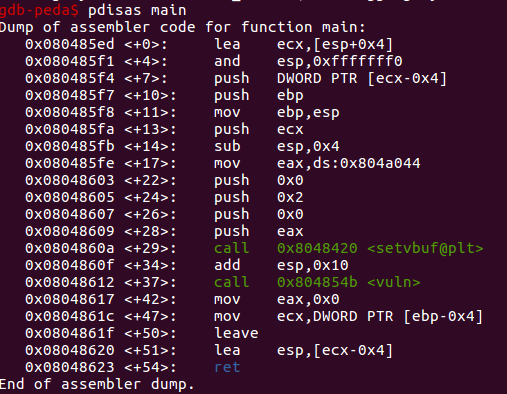 main함수에서는 특별한게 없어 보인다 call부분에서 호출되는 vuln함수를 살펴보면