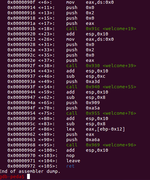 welcome의 offset는 00000909이다 그럼 해당 공격코드를 작성하기 위해 필요한 정보는 모두 구해졌다