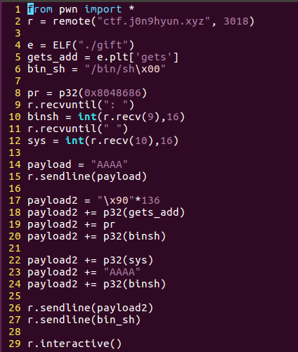 이번에 풀어볼 문제는 hackctf의 gift문제이다