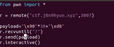 해당 코드는 이렇게 짰다 더미값을 30바이트를 주고 오버플로우를위한1바이트를 주소값에맞게 대입 후