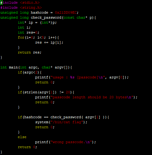hashcode값과 check_password함수의 리턴되는 값이 같으면 플래그를 출력해준다.