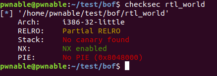 NX가 걸려있는 걸 확인했다. 그렇다는 건 쉘 코드를 삽입해서 풀 수 없을 거 같다 그럼 시스템 함수를 실행시켜야 한다. 제목에 나와있듯이 RTL이라는 기법을 사용하여야 한다.