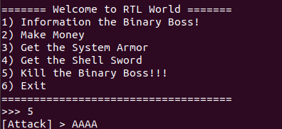 해당 코드는 시스템 함수의 주소와 "/bin/sh"의 주소를 담아놓은 변수를 만들고 sendline로 프로그램을 실행시켰을 때 우리가 입력값을 전달할 수 있는 5번을 누른 후 recvuntil을 통해 [Attack] >라는 문자열이 나올 때까지 문자열을 출력되면